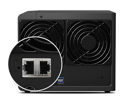 DS416 內(nèi)建支持故障移轉(zhuǎn)及 Link Aggregation 的雙網(wǎng)絡(luò)埠,在其中一個(gè)網(wǎng)絡(luò)埠故障的狀況下,仍可確保聯(lián)機(jī)繼續(xù),降低服務(wù)中斷的可能性以及因停機(jī)所造成的昂貴成本。此外,Link Aggregation 充分發(fā)揮雙網(wǎng)絡(luò)埠的優(yōu)點(diǎn),可提升連接速度,突破單一網(wǎng)絡(luò)線或網(wǎng)絡(luò)埠的速限。