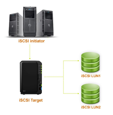 iSCSI Target:它概念類似于一種聯(lián)機接口,當iSCSI啟動器聯(lián)機至iSCSI Target時,iSCSI Target上連結(jié)的所有LUN也會聯(lián)機至客戶端的操作系統(tǒng)。