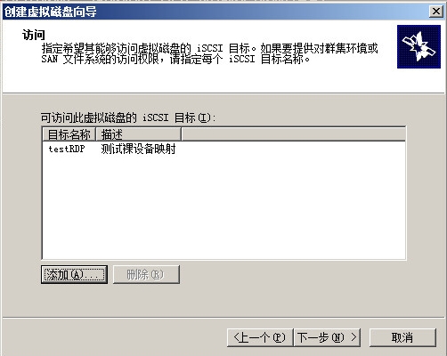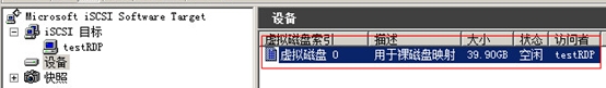 在iSCSI目標欄出現(xiàn)testRDP目標