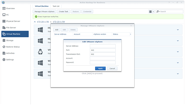 只需將數(shù)據(jù)從物理服務器遷移到虛擬平臺(如 Synology VMM 和 VMware vSphere),即可應對意外中斷或作為升級測試環(huán)境。 -