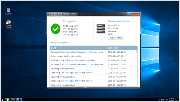 面對意外事件是否能具備快速恢復能力,是我們評估備份解決方案的關(guān)鍵要素。Active Backup for Business 采用多種方法來恢復數(shù)據(jù),可以滿足物流部門嚴格的停機時間要求。除了虛擬環(huán)境的即時恢復之外,用戶可以根據(jù)需要自助恢復單個文件,降低 IT 管理員工作負擔。